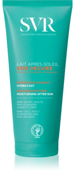 SVR Sun Secure Lait Apres-Soleil, 200 ml, Napozás utáni készítmények nőknek, A minőségi SVR Sun Secure napozás utáni készítmény biztosítja a szükséges regenerálást és nyugtató hatást a napnak kitett bőrnek. Tulajdonságok: táplálja a bőrt intenzíven hidratál megnyugtatja a bőrt napozás után arcra és testre is használható Összetétel: bőrgyógyászatilag tesztelt Használata: Vigye fel napon tartózkodás után egyenletesen a teljes testfelület tiszta bőrére.